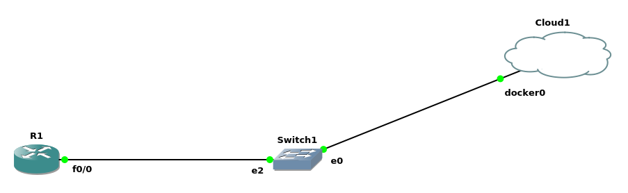 In this section, we will connect our container to a network in GNS3 to test our created docker container but first we will create our lab in GNS3.
