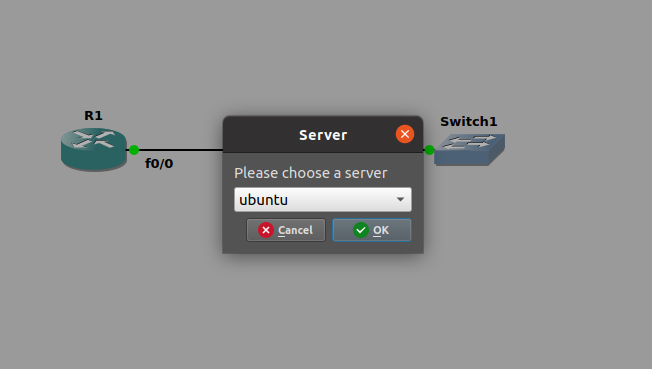 - Add cloud to your topology, but make sure to chose your host server, not GNS3VM as below: